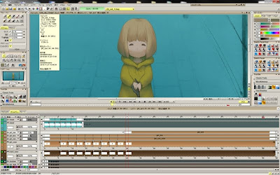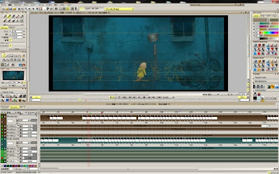 The animation and coloring was done in TVPaint, the backgrounds painted in Photoshop and the final compositing was done in After Effects. (Although you can paint the backgrounds directly in TVPaint many background painters are more familiar with Photoshop , but you can easily import Photoshop .PSD files into TVPaint ... and also export artwork created in TVPaint as a .PSD file to take it into Photoshop. TVPaint has a special script available to Export your animation from TVPaint to After Effects, which keeps all of the layers and exposures intact. This allows for animating and coloring in TVPaint, then moving the whole scene over to After Effects to add additional compositing effects.)